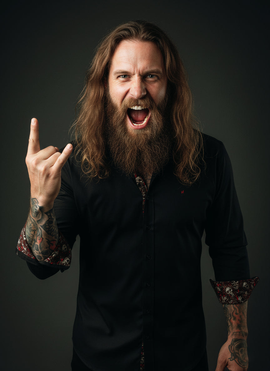 Unser DECIHELL RED SKULL ist kein gewöhnliches Businesshemd. Es steht für kompromisslose Rock’n’Roll-Attitüde, exzellente Handwerkskunst und pure Leidenschaft – für alle, die wissen, dass Stil kein Kompromiss ist.