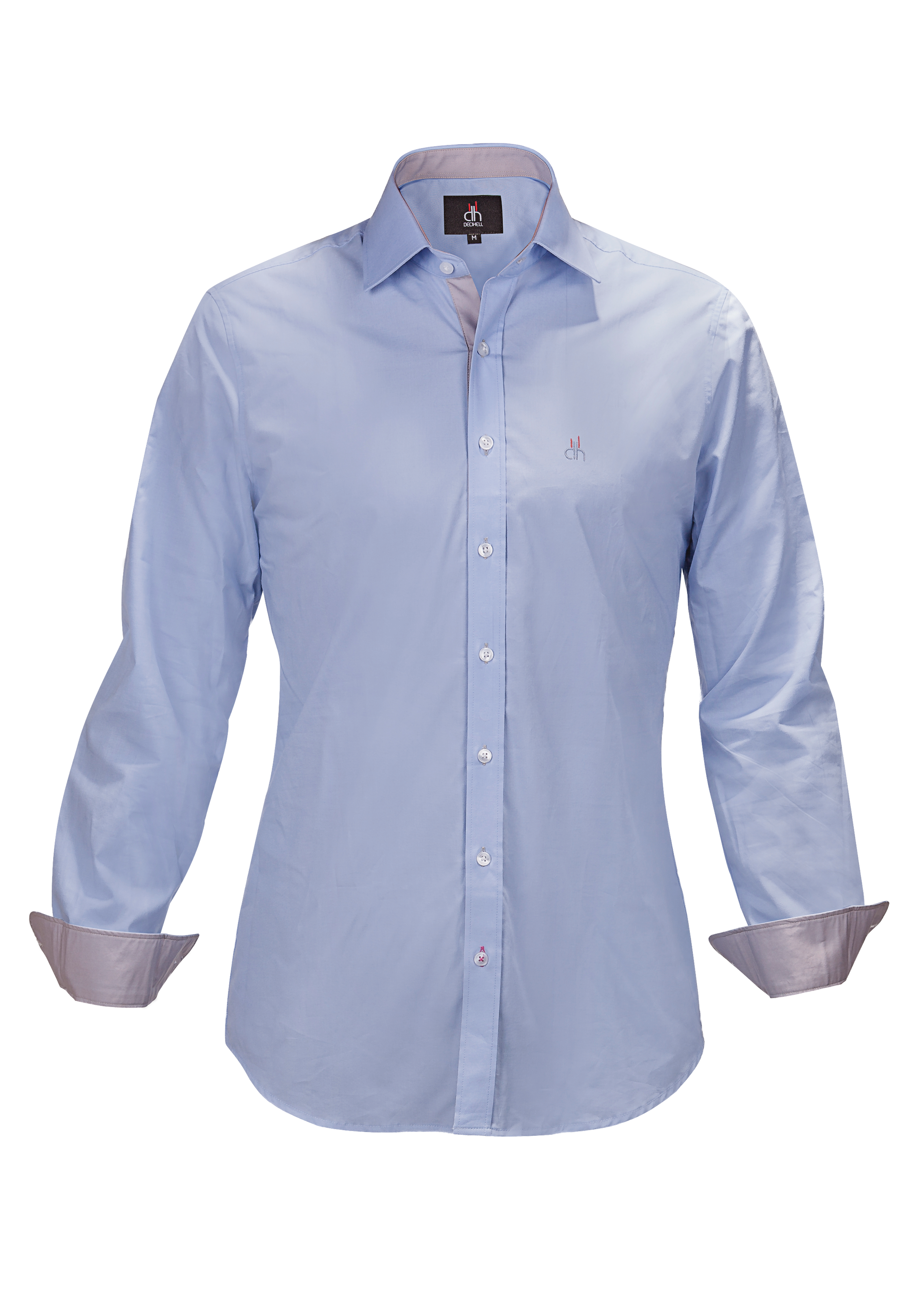 - Klassischer Kontraststoff in Kragen, Manschetten und Knopfleiste