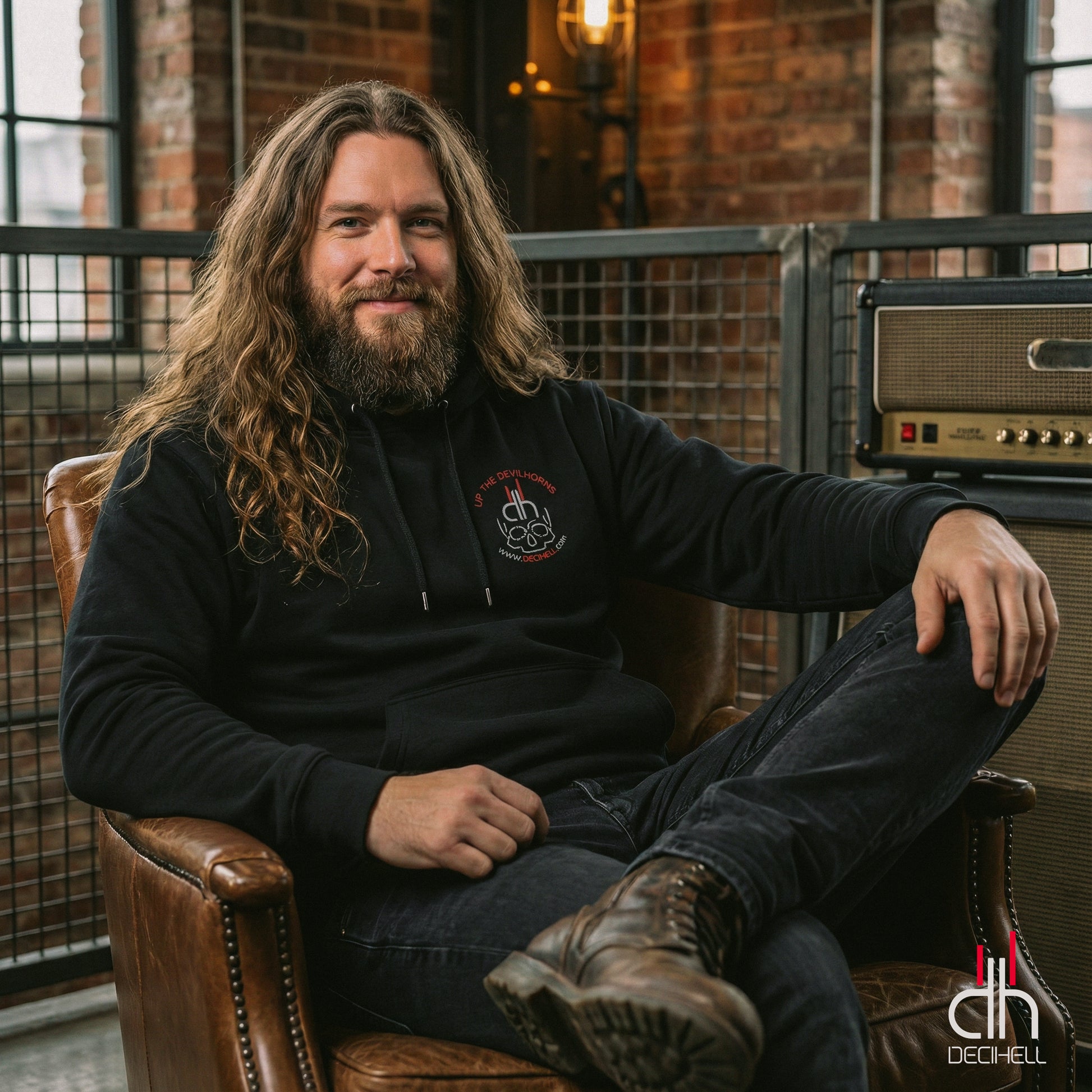 Unser DECIHELL Crew Circle Hoodie ist nicht nur ein Hoodie – er ist dein täglicher Rock’n’Roll-Moment. Gefertigt aus 100 % Bio-Baumwolle, GOTS & OCS zertifiziert, fühlt er sich auf der Haut so gut an, wie ein klassisches Gitarren-Riff in den Ohren. Mit einem stoffgewicht von 350 g/m² liefert er genau die richtige Portion Komfort und Robustheit – für Bühne, Straße oder Sofa.